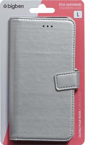Accueil / Accessoires / Protection / Étuis universels / Folio Universel L Fermeture aimantée Fonction Stand Argent