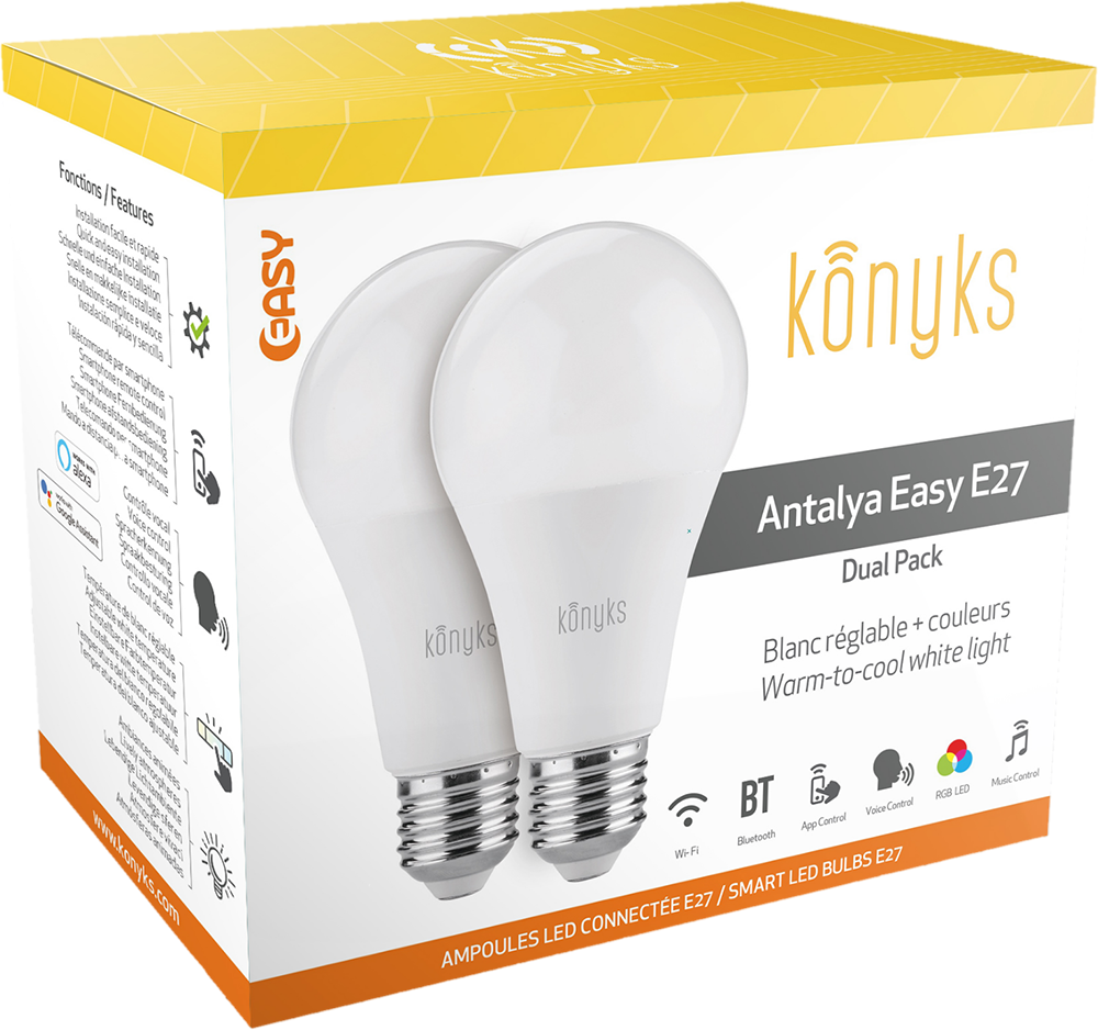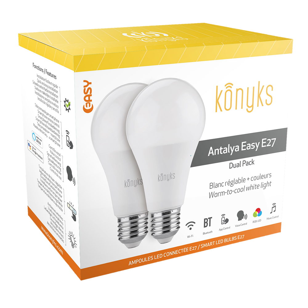 Pack de 2 Ampoules LED connectées Antalya 11W E27 Google Assistant, Alexa & Siri + Guide d'utilisation/Sécurité/Garantie