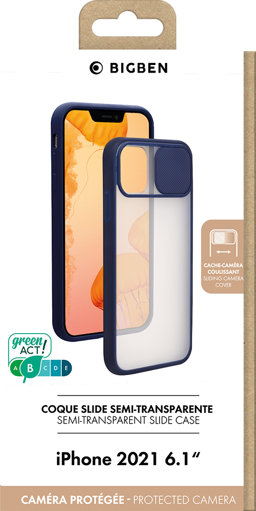 Coque iPhone 13 Slide + Cache coulissant pour caméra Contour Bleu